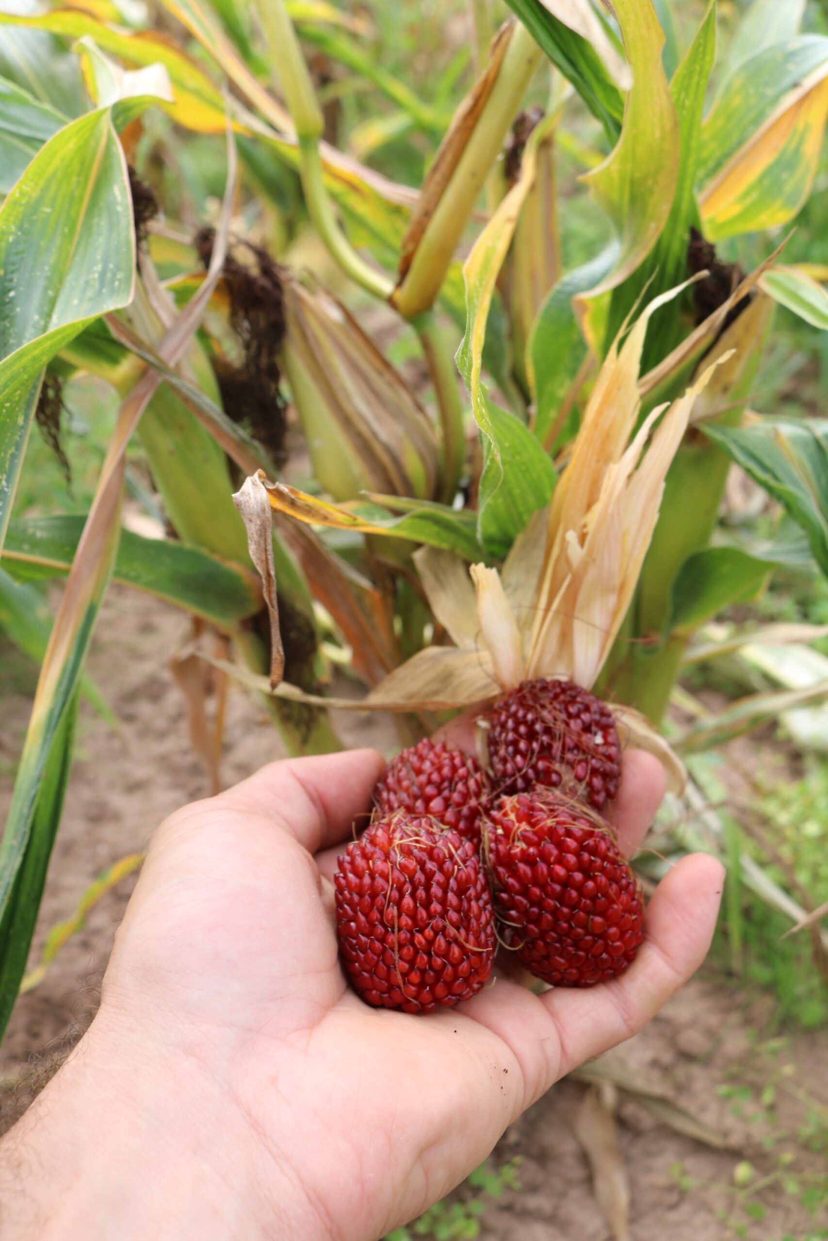 Der Ziermais „Erdbeermais“ fällt durch seine kräftig rot gefärbten Kolben auf, welche in Form und Farbe an Erdbeeren erinnern. Neben der Verwendung als Dekoration lässt sich aus den Körnern ein schmackhaftes Popcorn herstellen. Die Pflanzen sind eher geringwüchsig, bestocken aber kräftig, wodurch sich zahlreiche Kolben von nur einer Pflanze ernten lassen. Der Erdbeermais ist relativ frühreif, wodurch sich auch in kühleren Lagen reife Kolben ernten lassen.